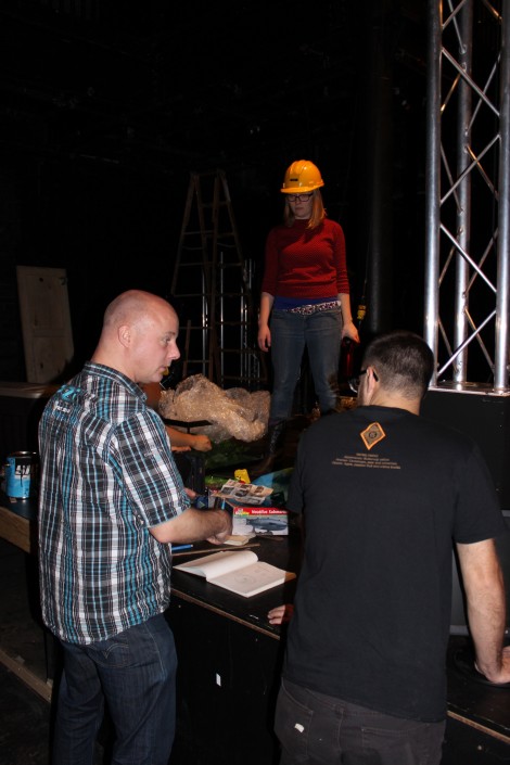 3 and 4) Lighting Designer Itai Erdal sets up some cues for the attack of the Nautilus, and rear projection for the stage. Itai's amazing talent will be seen as of May 30 in Startford: he is designing the lighting for Brecht's Mother Courage and Her Children at the Stratford Festival.