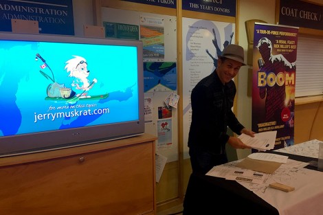 We had an amazing time Thanksgiving week in Whitehorse. Kidoons and WYRD Productions' BOOM played 3 shows at the Yukon Arts Centre, with standing ovations for Rick Miller! We had a chance to visit with the amazing folks at the MacBride Museum (there's Craig Francis at Sam McGee's original cabin), the Yukon Transportation Museum, and the Kwanlin Dün First Nation Cultural Centre, and the Centre de la francophonie to look at future episodes of our series. We also got lots of Yukon signatures for the Earth Day Canada Earth Flag. Thanks for your Northern hospitality Whitehorse... we imagine Buster Bear and Carrie Boo will be coming back to visit!