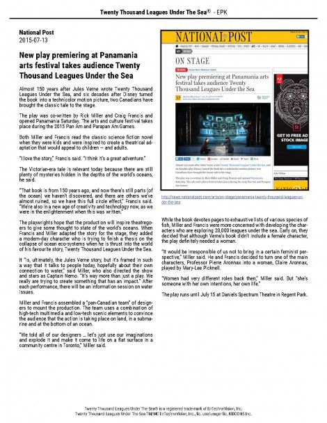 Almost 150 years after Jules Verne wrote Twenty Thousand Leagues Under the Sea, and six decades after Disney turned the book into a technicolor motion picture, two Canadians have brought the classic tale to the stage.